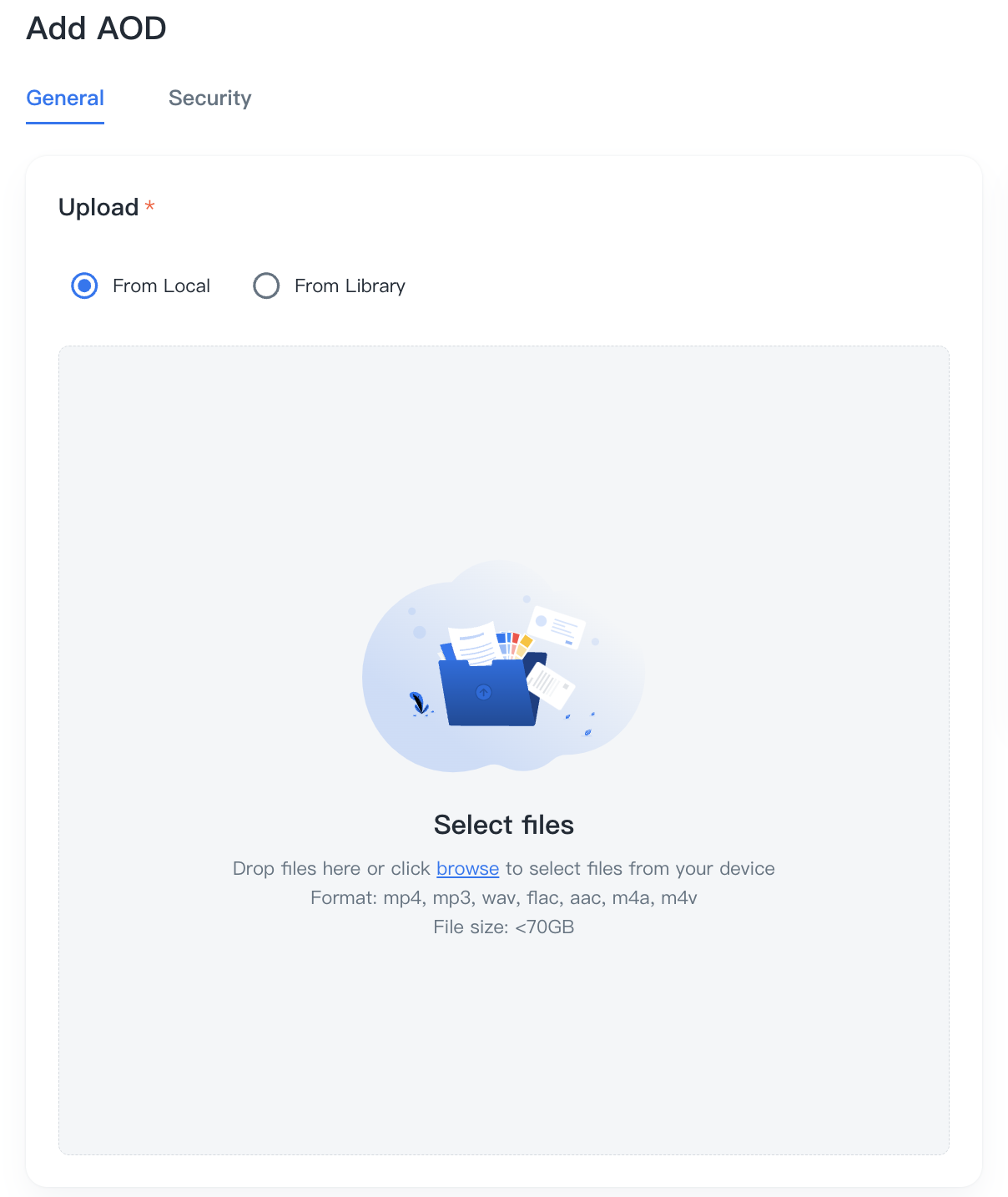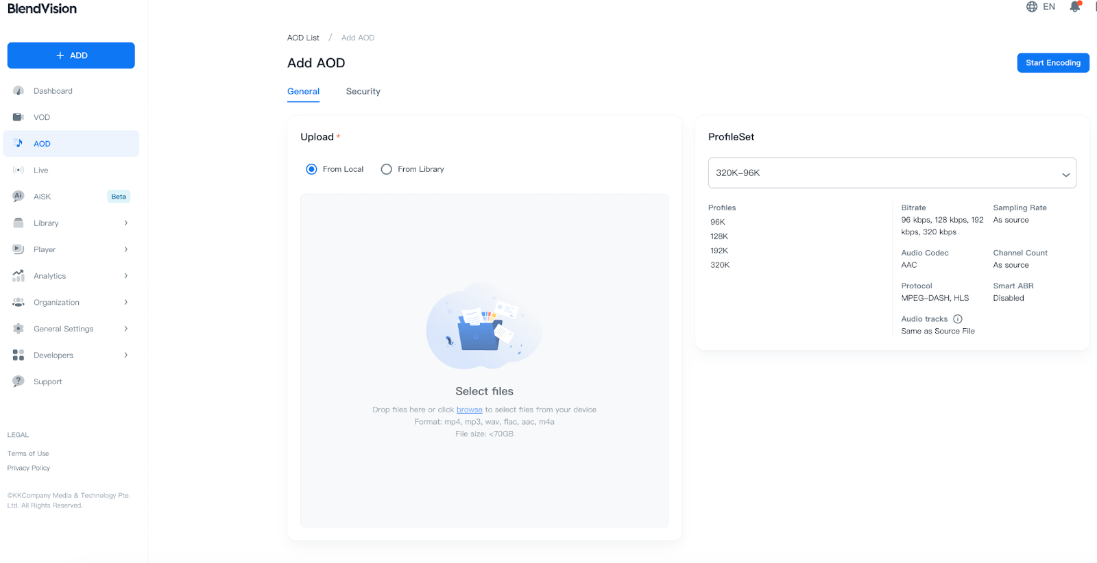 • Some features (such as cover images, etc.) will only be active after encoding is complete. For steps on how to edit an AOD, enabling further features, and editable fields after an AOD is created, please refer to Edit an AOD.