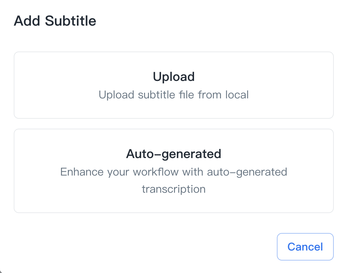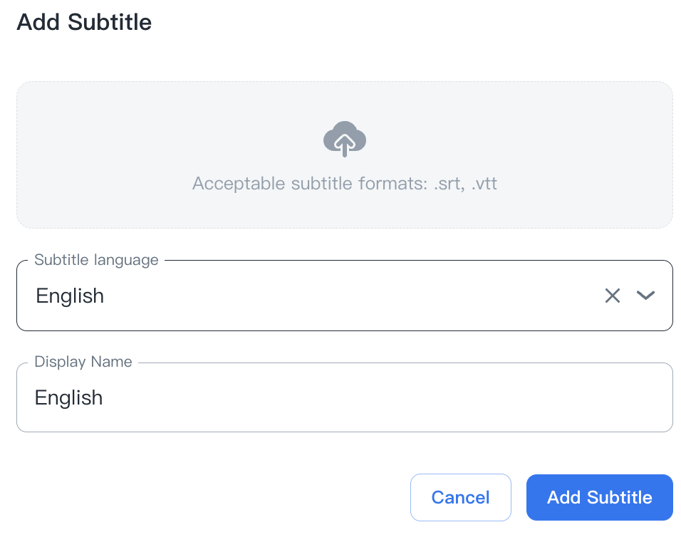 • Press the “Add Subtitle” button to bring up a window for uploading subtitle files.