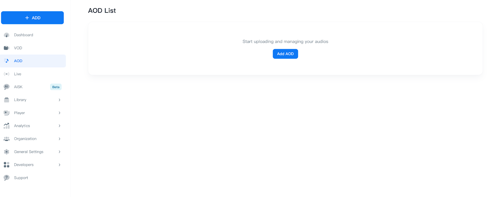 • You can also click “AOD” on the left sidebar to access the AOD List, then click the “Add AOD” button to create your new content.