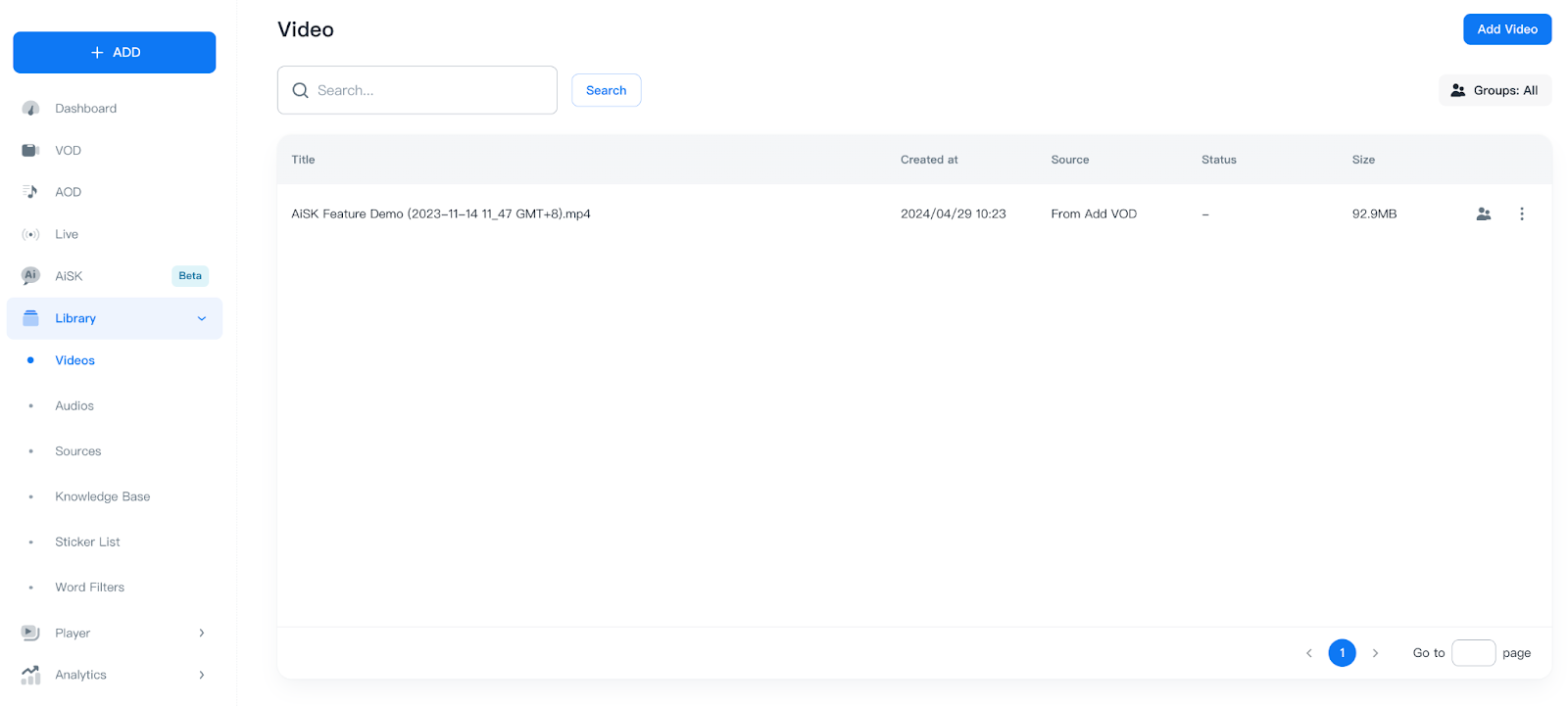 You can see the created VODs and uploaded videos shown in the VOD and Video List.