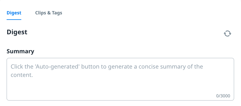 This feature allows users to generate an AI-generated summary of the provided content to be utilized for AiSK interaction, content overview and information.