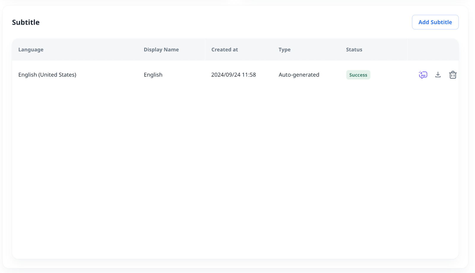 - Click the “Add Subtitle” button to upload a new subtitle(s)
