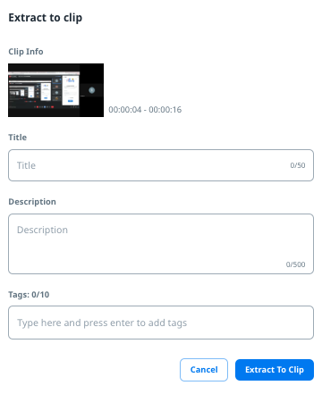 The pop-up window will be displayed so that you can fill in the clip information. It will display the time range of your selected range.