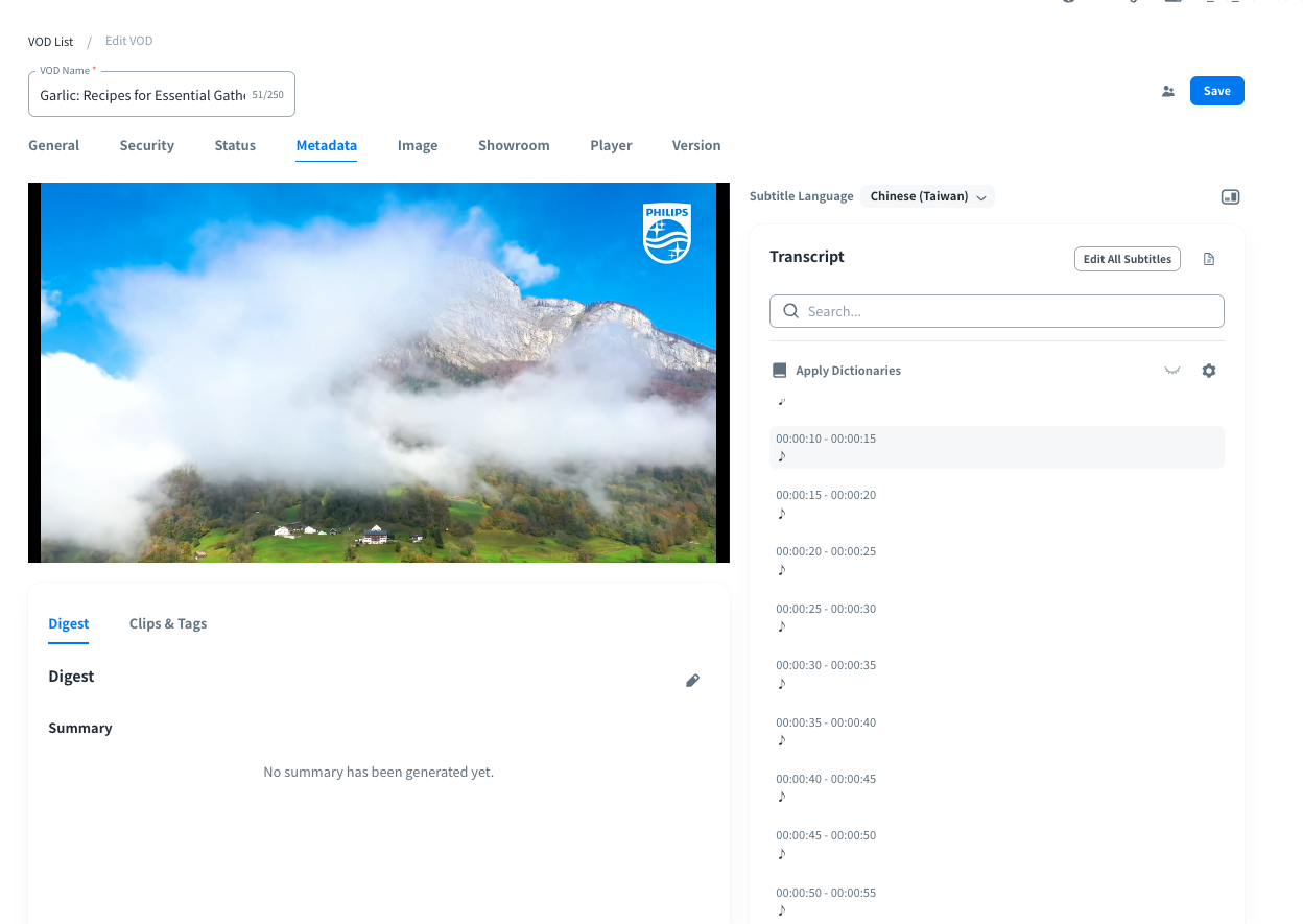 *The VOD and Subtitle cannot be deleted during Summary generation.