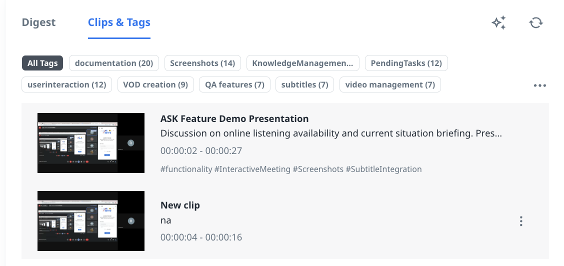 The created clip will be listed below Clips & Tags section, and the clip information can be edited/deleted.
