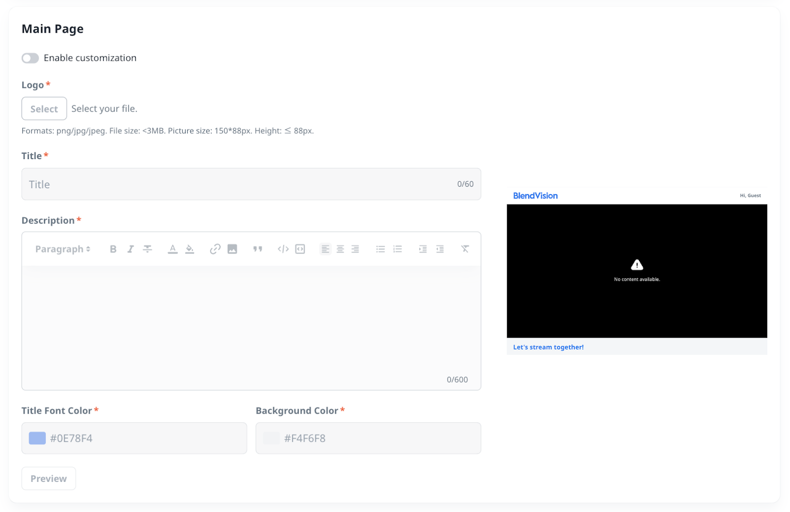 The login page is an entry page that prompts your audience to enter the nickname they want and input an access code if you have enabled the token mechanism.