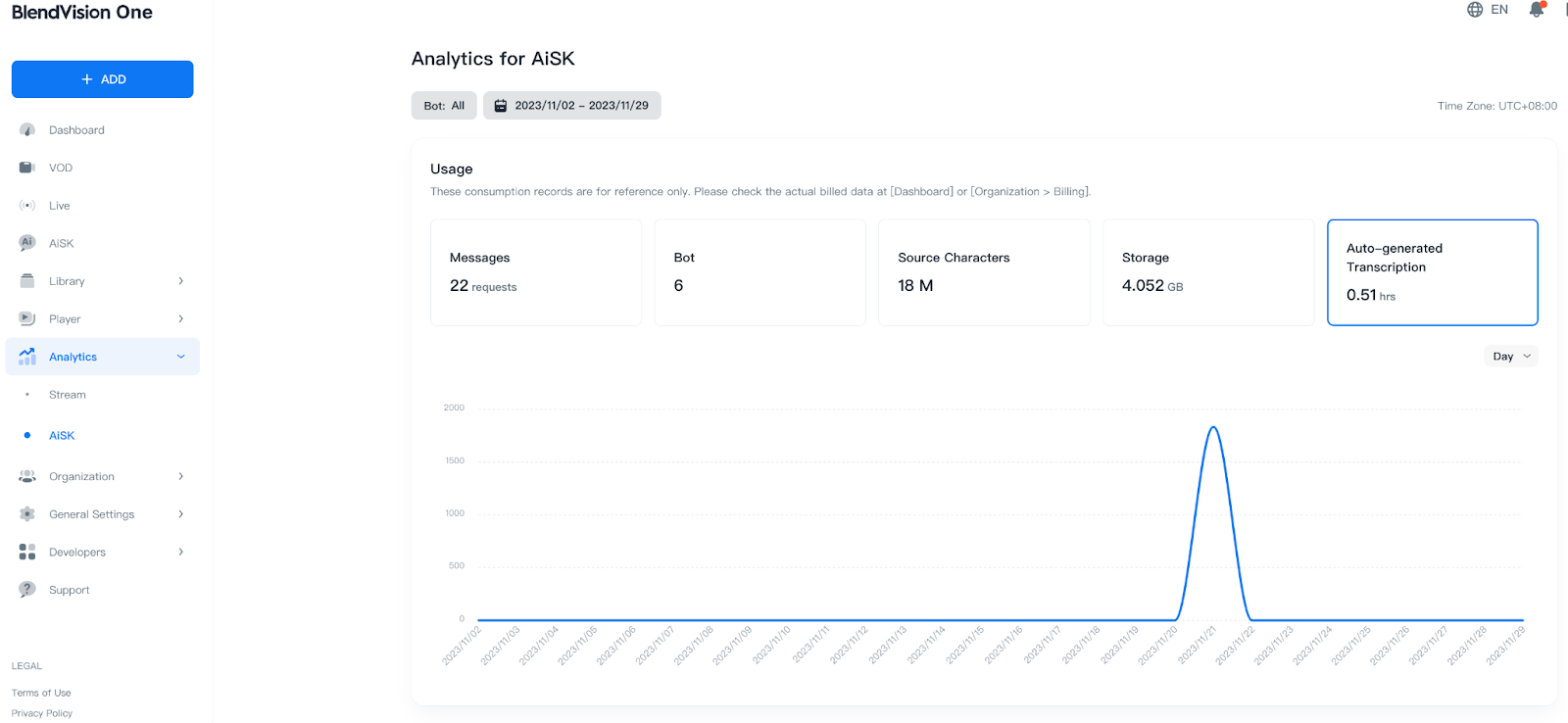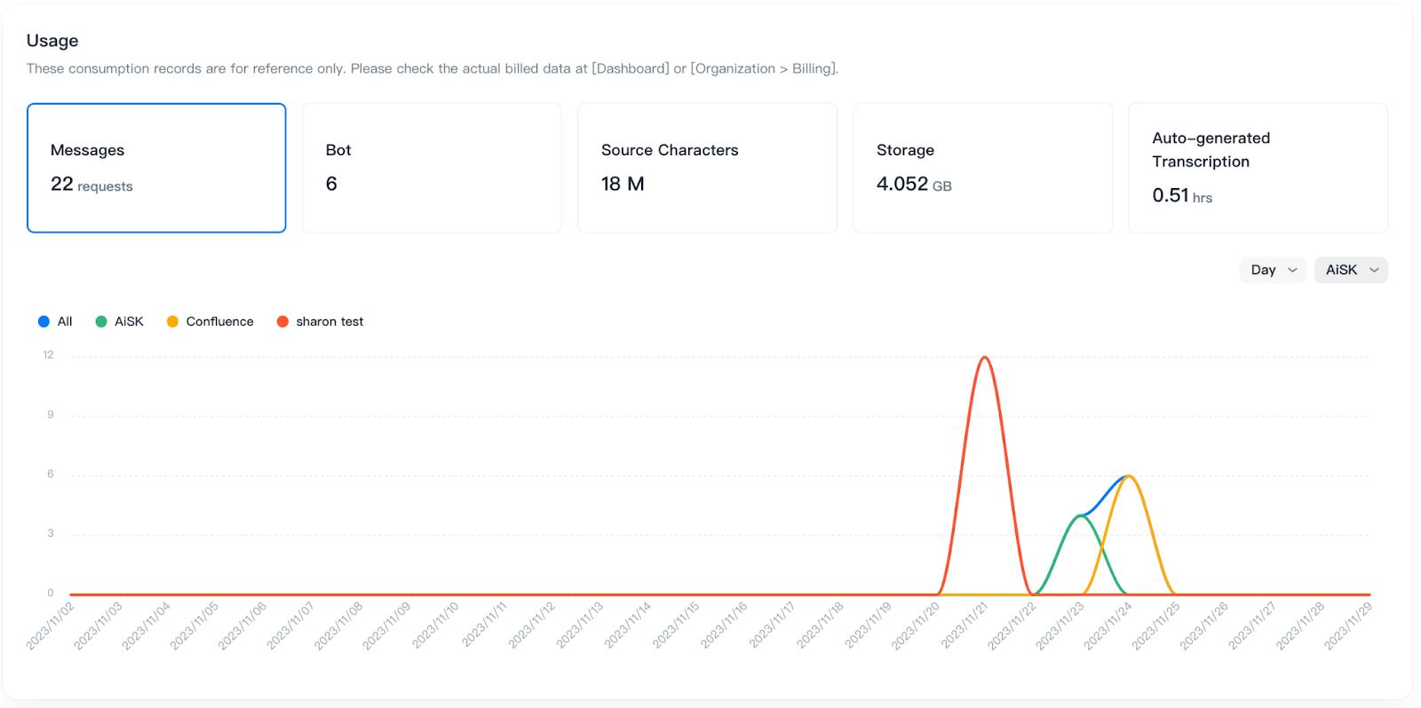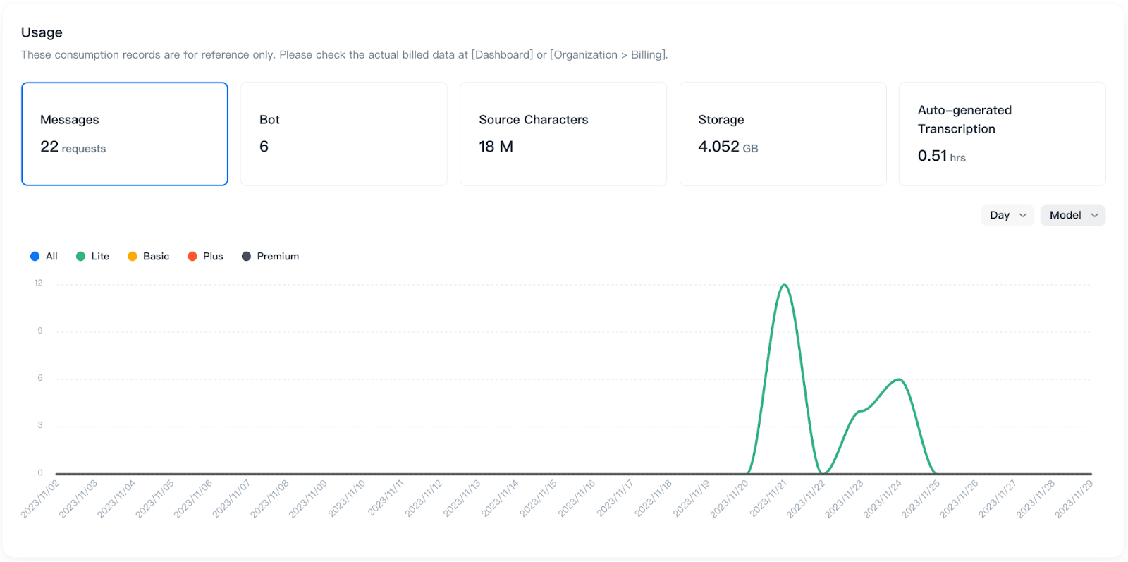These consumption records are for reference only. Please check the actual billed data at [Dashboard] or [Organization > Billing].