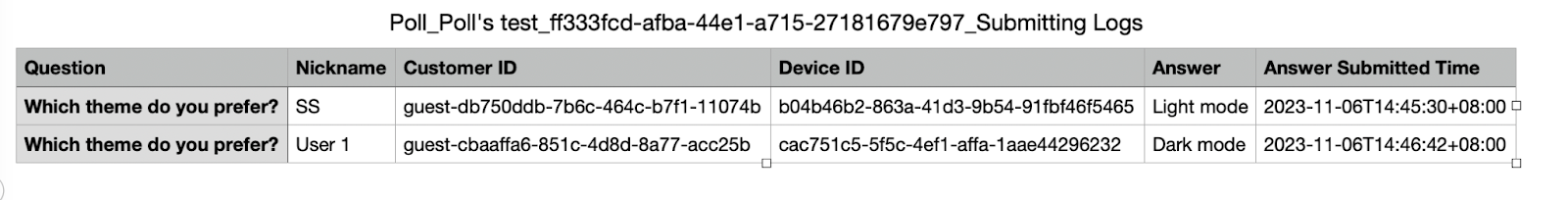 - 投票提交紀錄