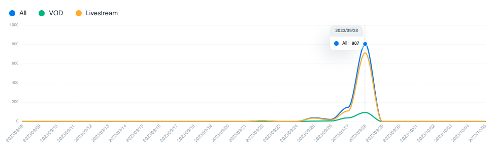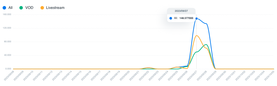 - 右側下拉選單可切換圖表類型:串流類型、裝置和地區。