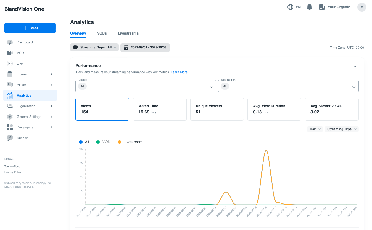 BlendVision One 提供用於使用資訊和觀眾趨勢分析的視覺化圖表。