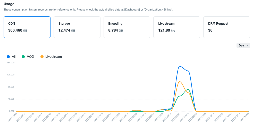 注意:顯示的記錄僅供參考。實際計費數據請查看儀表板或在組織>賬單中查看。