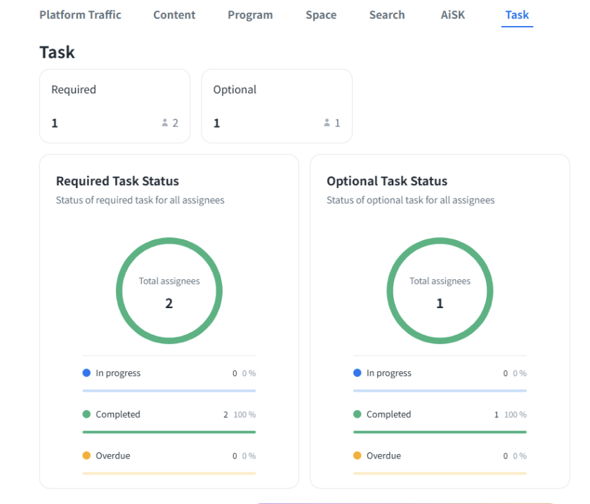 • Required Task Status: You can confirm the status (In progress/Completed/Overdue) of required tasks for all assignees