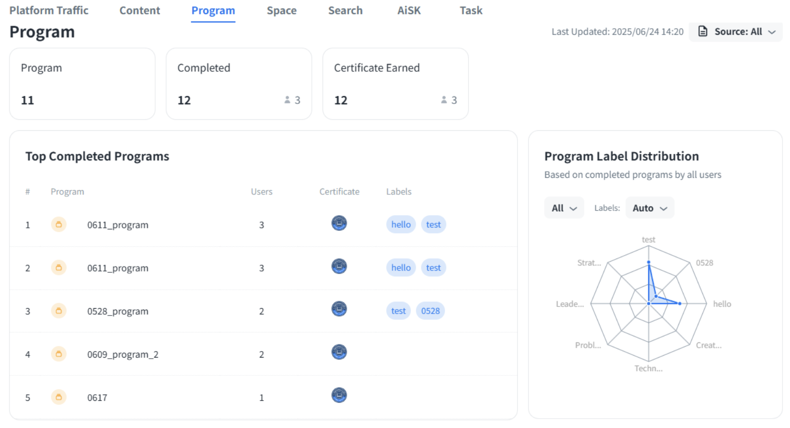 • Top Completed Programs: You can confirm the most engaged completed program information