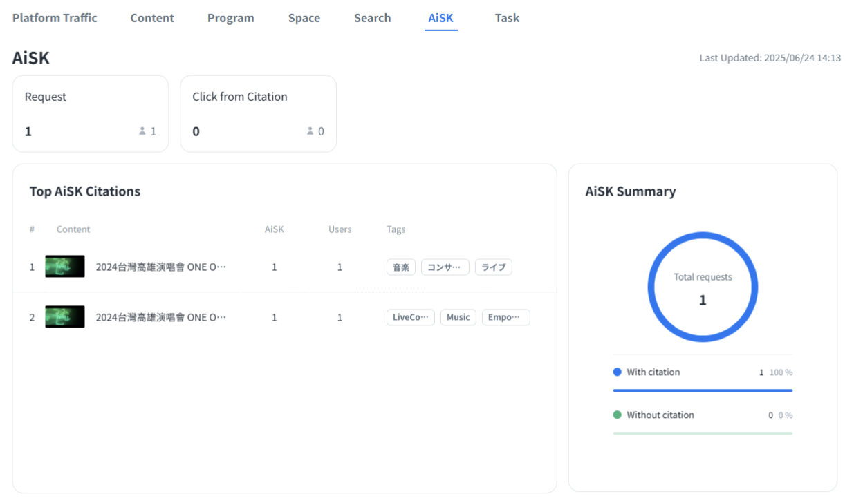 • Top AiSK Citations: You can confirm the top AiSK citations information