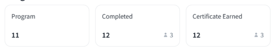 • Certificate Earned: Hover to confirm the amount of certificate and the users who earned the certificate