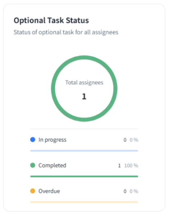 • Optional Task Status: You can confirm the status (In progress/Completed/Overdue) of optional tasks for all assignees