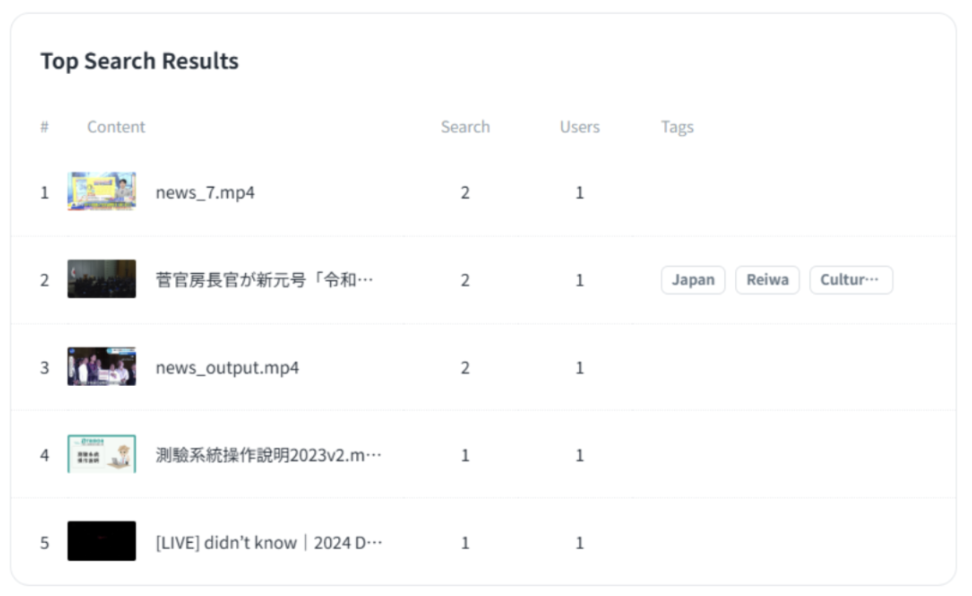 • Click from Search: Hover to confirm the click count and amount of users who clicked search results