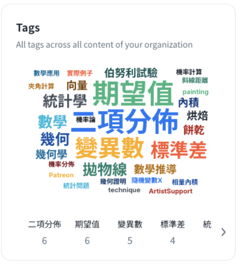 The amount of tags within the content will be listed at the bottom, and If the width exceeds container width, tag will overflow with a scrollbar.