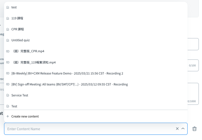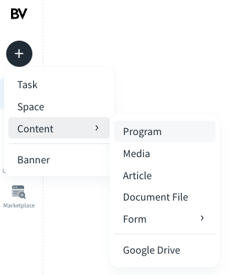 1. Click the “+” button on the left sidebar, and click Content to add a new program which you can organize and manage a set of content to share with users.