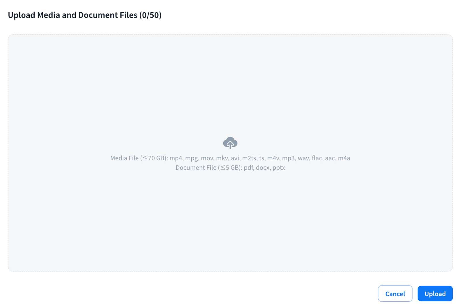 Upload the source files of media or document files to be added. In BlendVision AiM, we support the following input formats:
