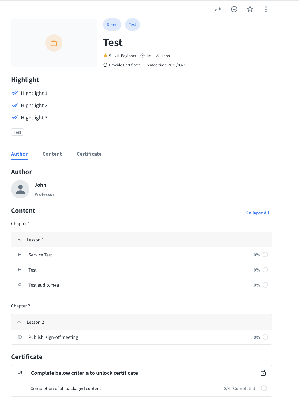 • Certificate record: Click Certificate Record icon to confirm the details of certificate records of the users who have completed the program.