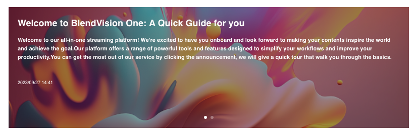 儀表板上的頂部橫幅顯示BlendVision One的最新消息,如維護信息、關鍵功能發布以及可參考的任何幫助文章。