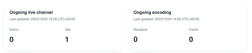在頂部橫幅下方,它顯示您進行中的直播和VOD轉檔的最新概述。