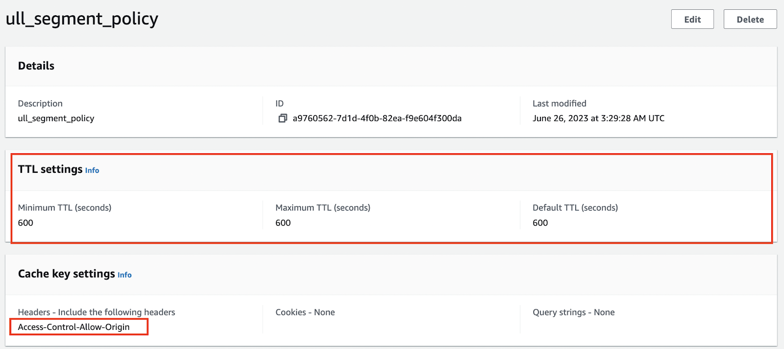 - 91bb67f9-4f4e-4226-831d-9874a7862b61/vod/* (select the VOD segment policy as Cache policy)
