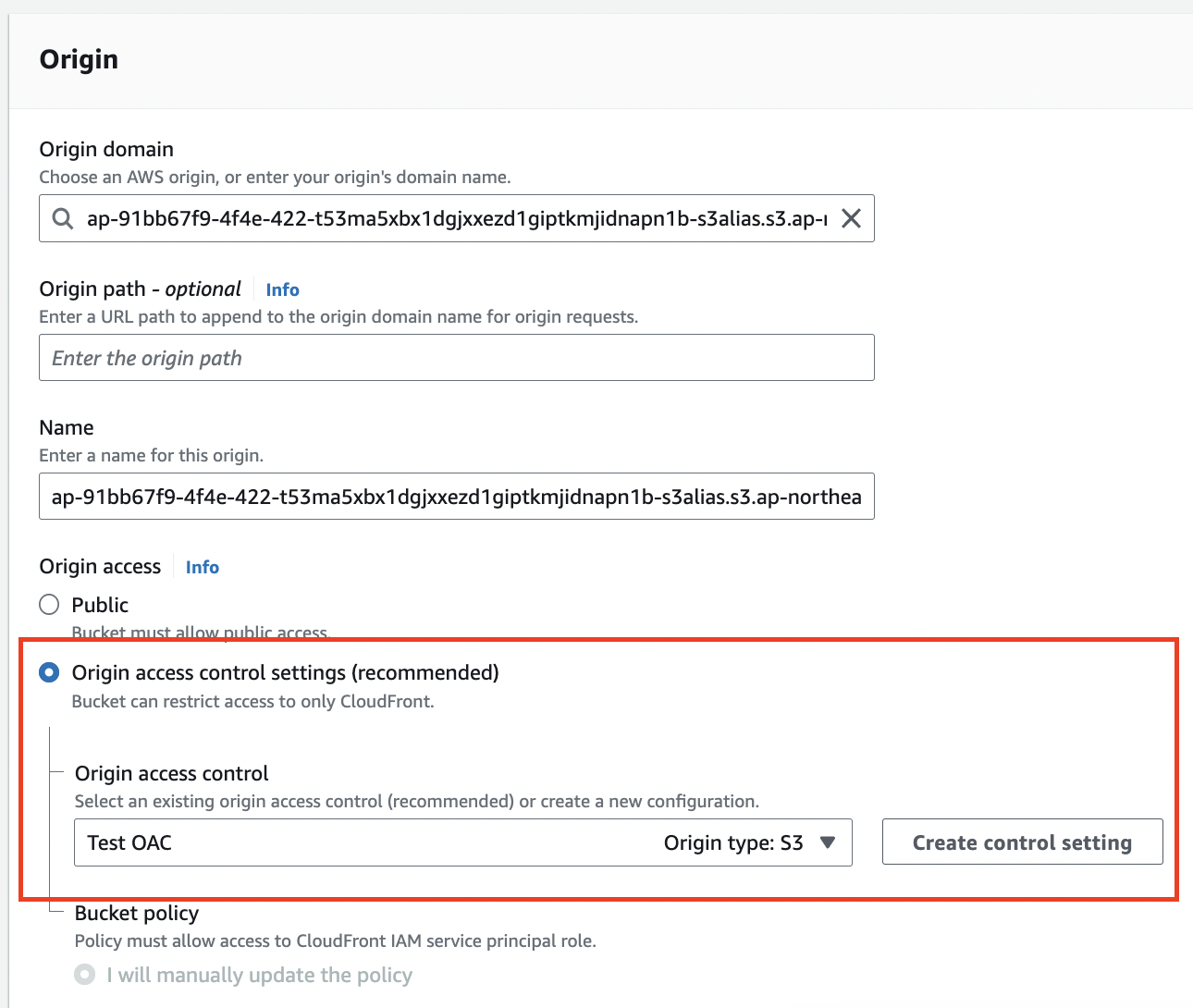 - Enable Origin access control setting