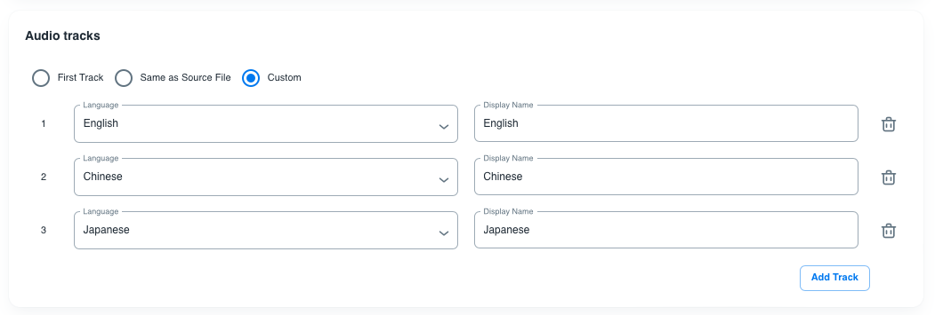 - 自定:自定音軌輸出及其語言代碼/顯示名稱