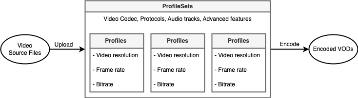 在 BlendVision One 中,您需要通過將Profile添加到ProfileSet來定義 VOD 的輸出解析度和比特率。這將為每個 VOD 定義轉檔的編碼器和串流協定。