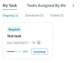 The tasks assigned to you will be listed on “My Task” tab on the left sidebar by the statuses Ongoing/Scheduled/Ended
