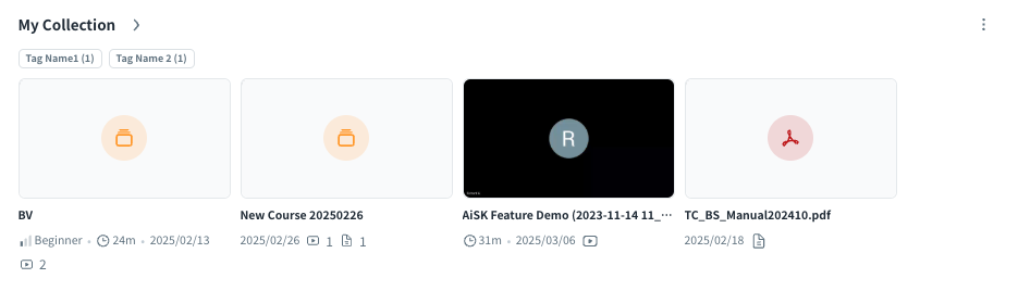 You can make a collection of the contents with clicking icon on each uploaded content.