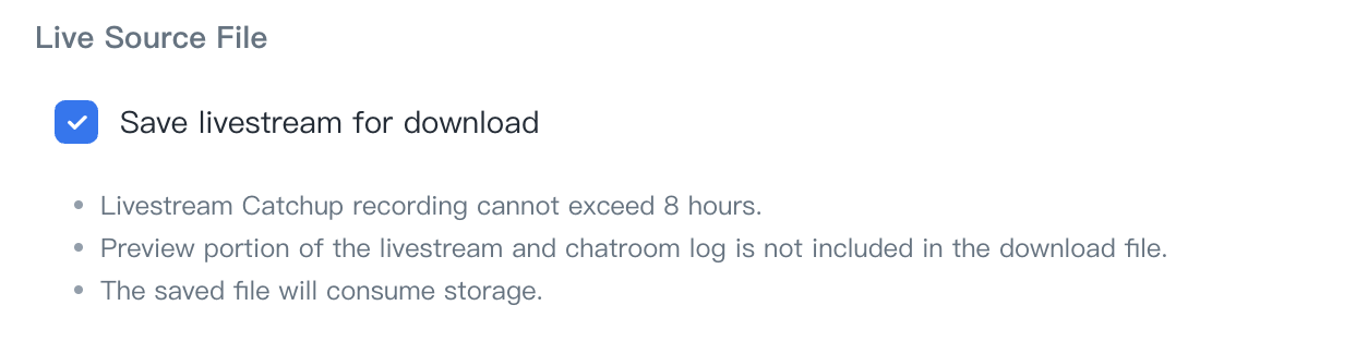 - 開始和結束時間:存檔的VOD將在預定時間內自動發布,供觀眾觀看。