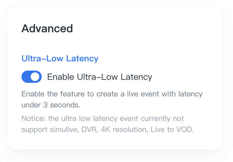 注意:ULL直播有以下限制。關於ULL直播的更多信息,請參考超低延遲直播 (ULL直播)。