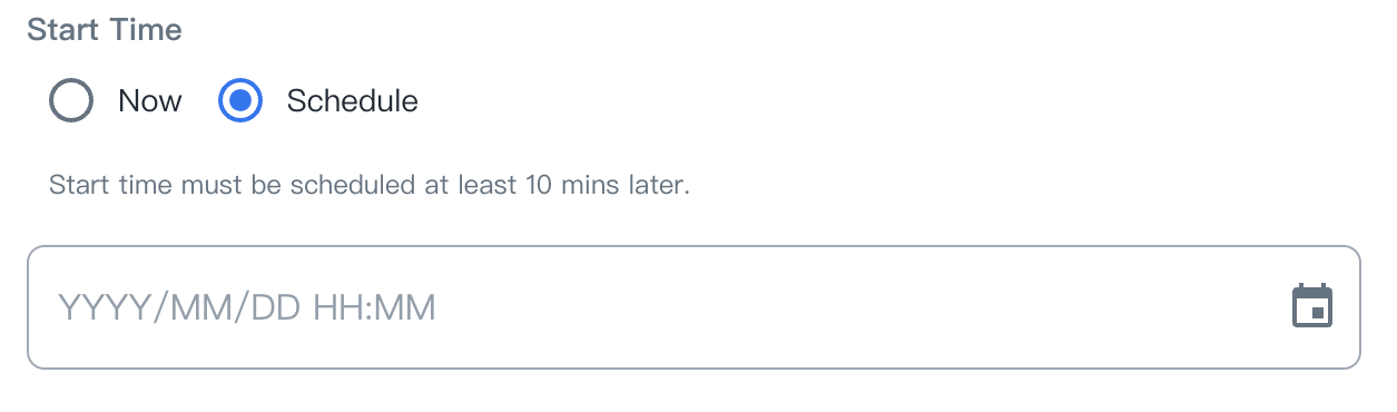 預定的開始時間必須至少比活動創建時間晚10分鐘。