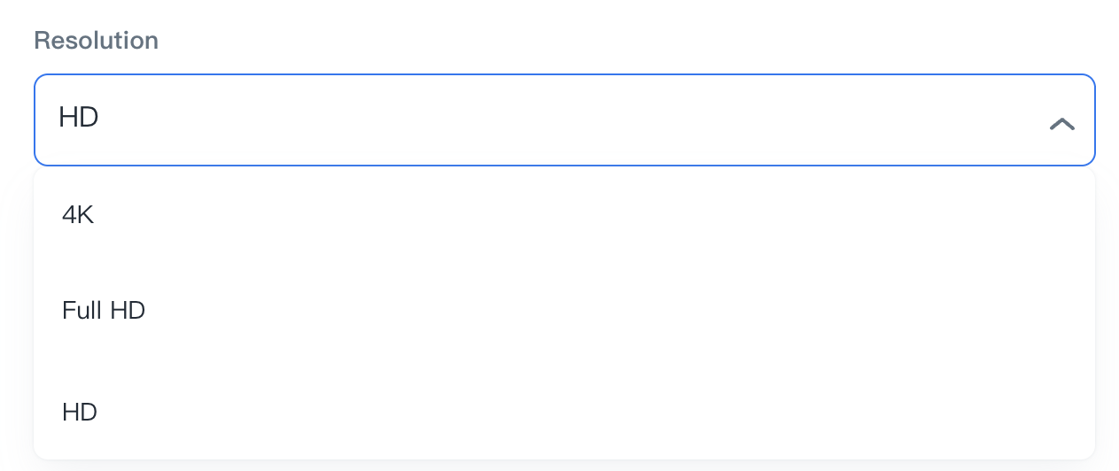 可用的解析度選項有:4K、全高清(Full HD)和高清(HD,預設)。