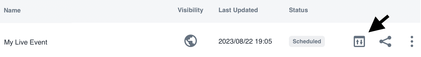 2. 在直播列表中您直播活動的右側點擊控制室圖標。