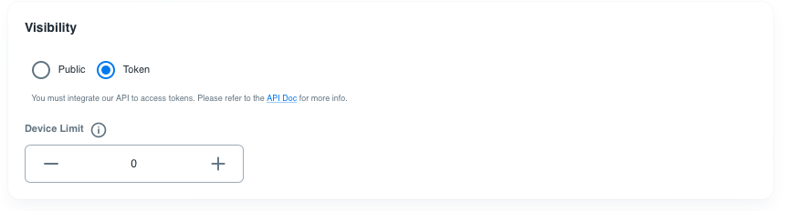- 選擇「Token」選項時,您可以設置設備限制(0至255)。