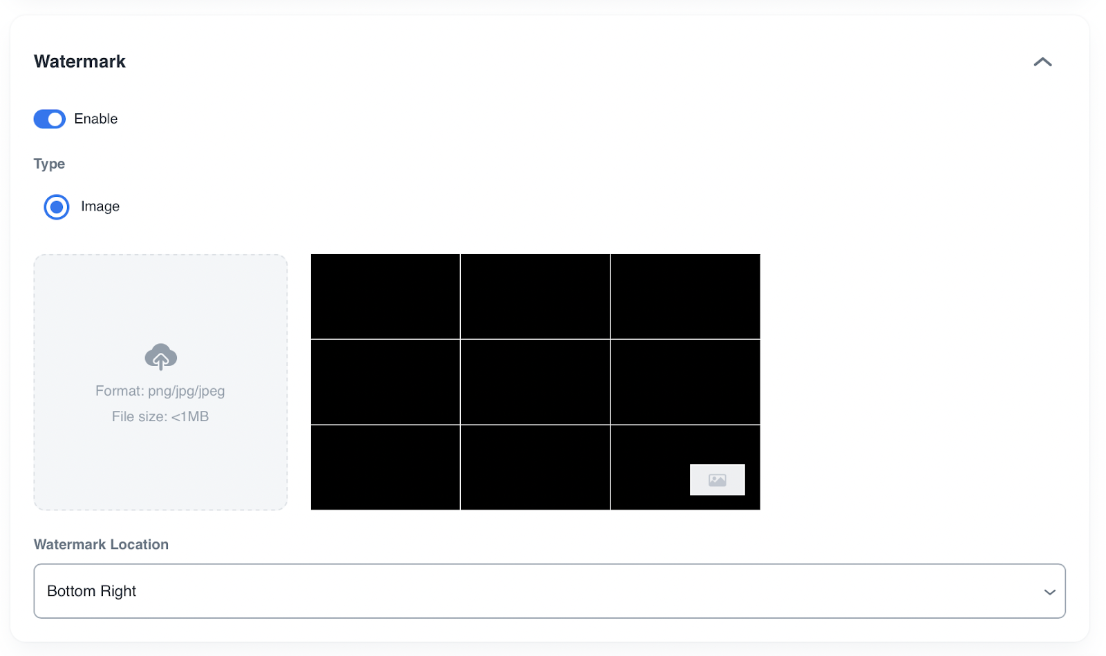 重用直播活動時,可啟用/禁用浮水印功能並編輯設置。詳情請見設置內容保護功能。