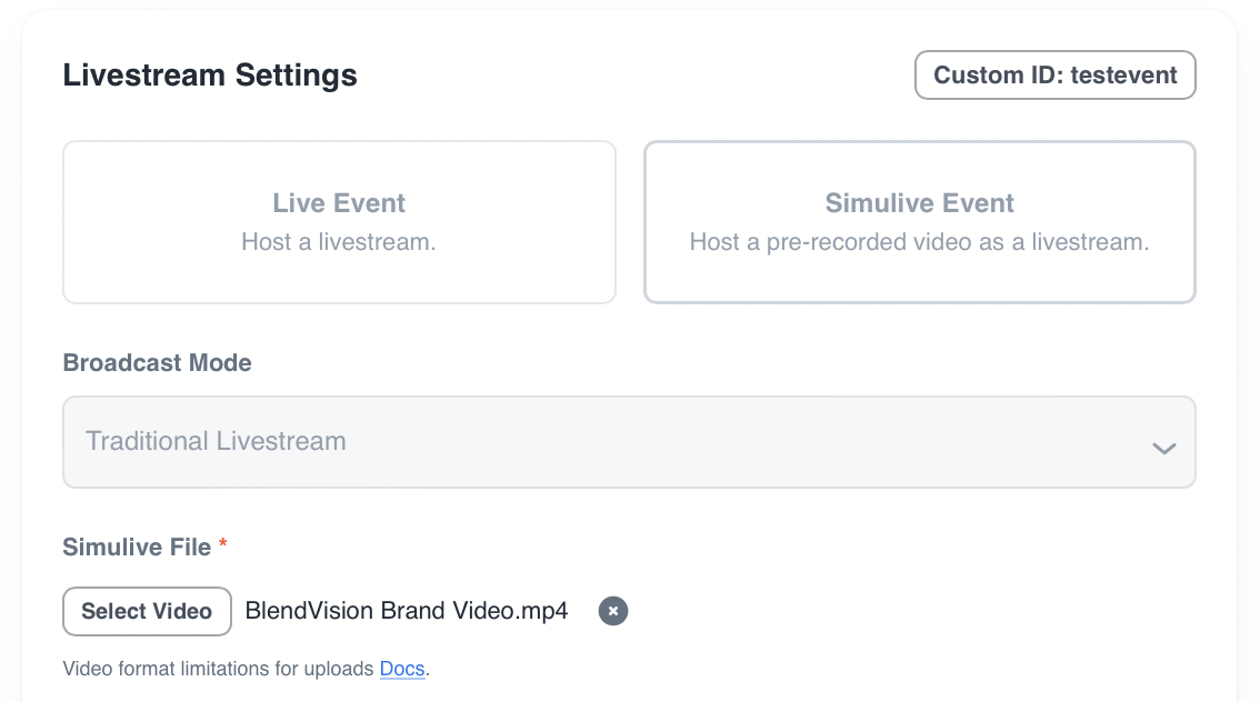 - 例外:如果選擇了「錄播活動」類型,重用時可以留空「錄播用影片」。但在狀態變更為「待預覽」(計劃開始時間前>12小時)之前,您仍需選擇視頻檔案作為流媒體來源。