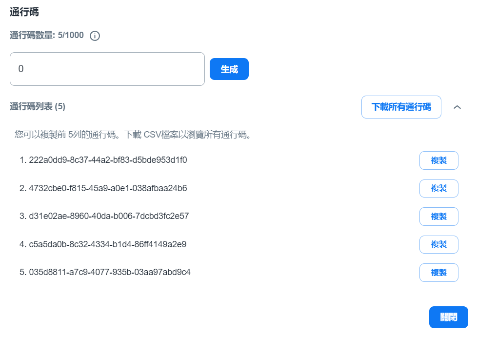 您也可以通過在裝置上限欄位中填入允許的數字來設置每位用戶(每個令牌或兌換代碼)的裝置上限限制。(最大值為255)