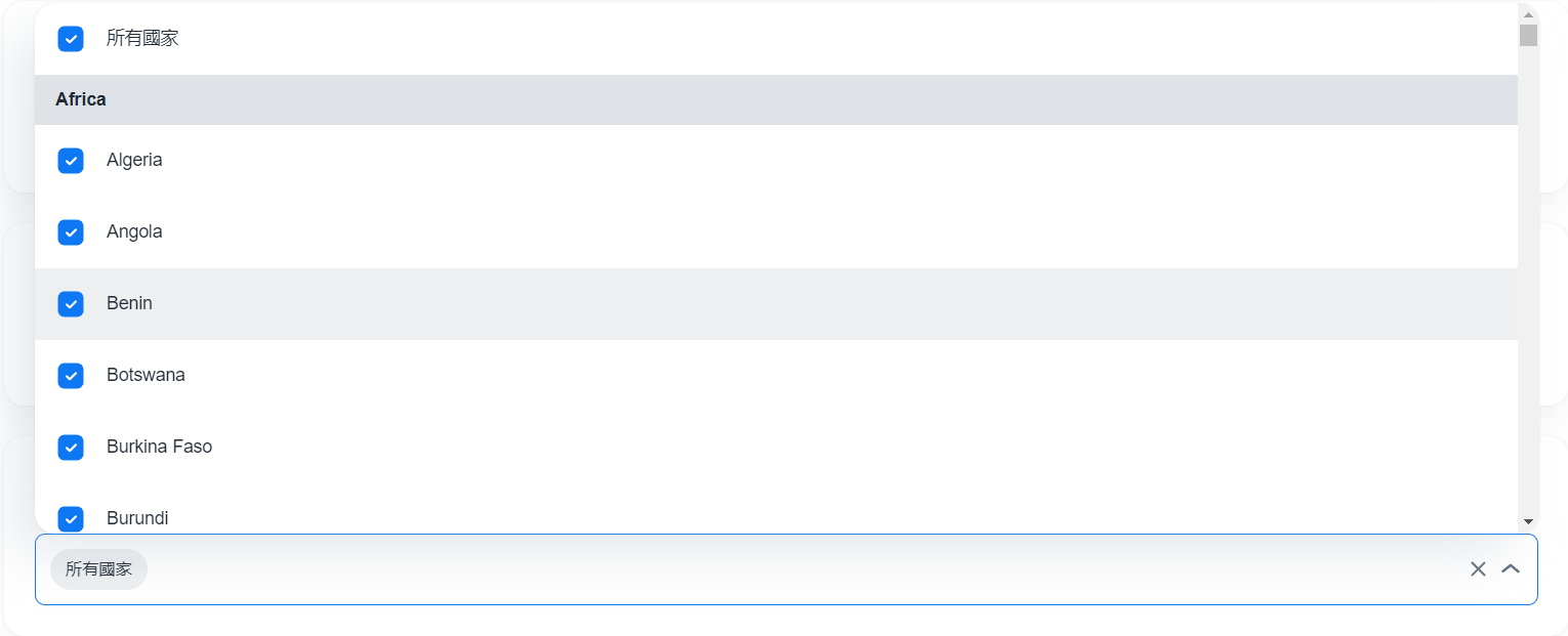 - 選擇所有國家並取消選擇您不希望允許的地區。