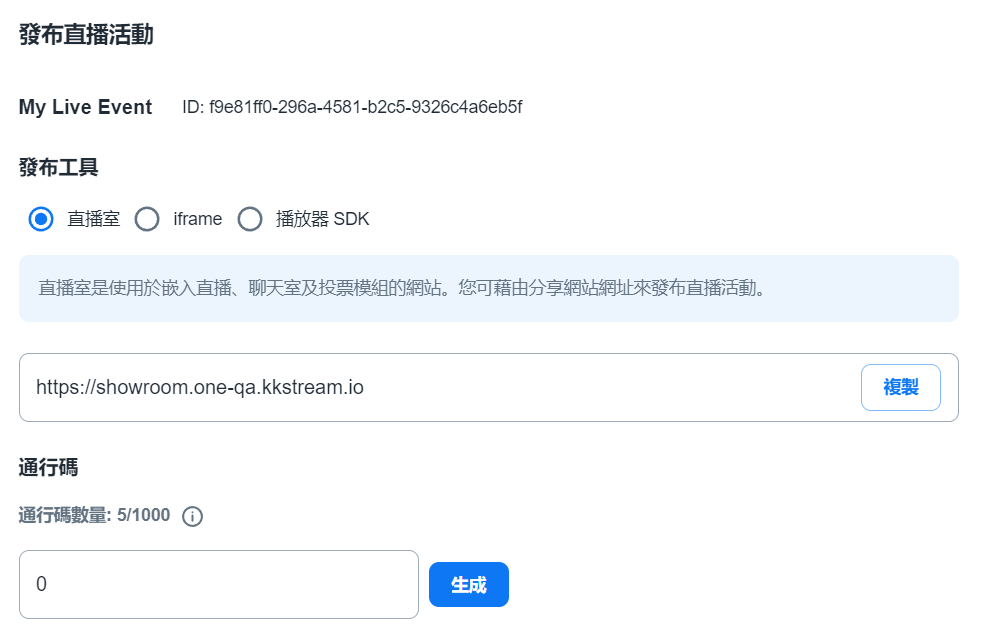 • 生成Token的另一種方法:點擊直播活動列表或控制室中的分享圖標。