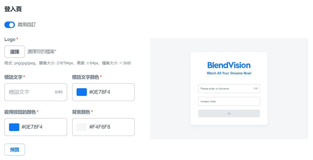 登入頁是提示您的觀眾輸入他們希望的暱稱並輸入通行碼(如果您啟用了Token機制)的入口頁面。
