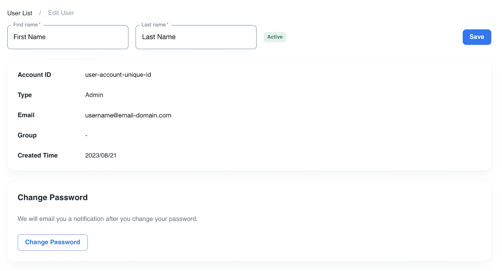 - 編輯您的帳戶信息,然後按下「儲存」按鈕提交。