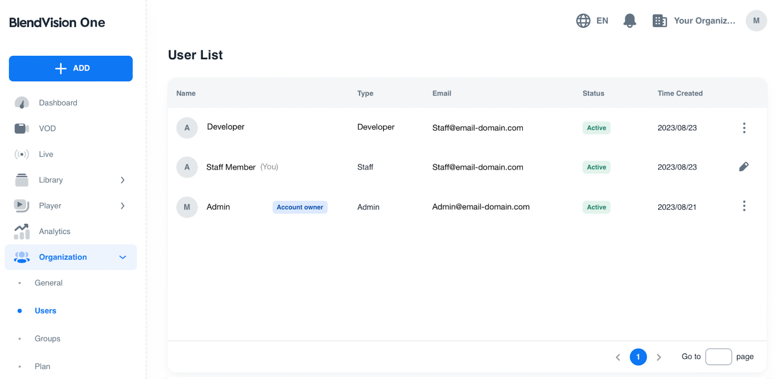 BlendVision One提供了一個組織模組,旨在簡化您組織內多用戶的管理。