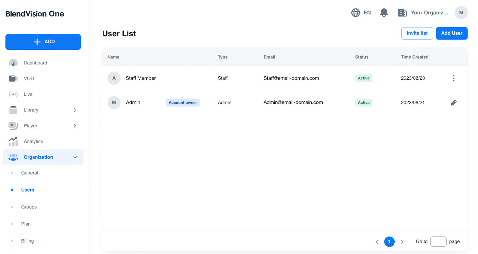BlendVision One 提供了一個組織模組,旨在簡化組織內多用戶的管理。