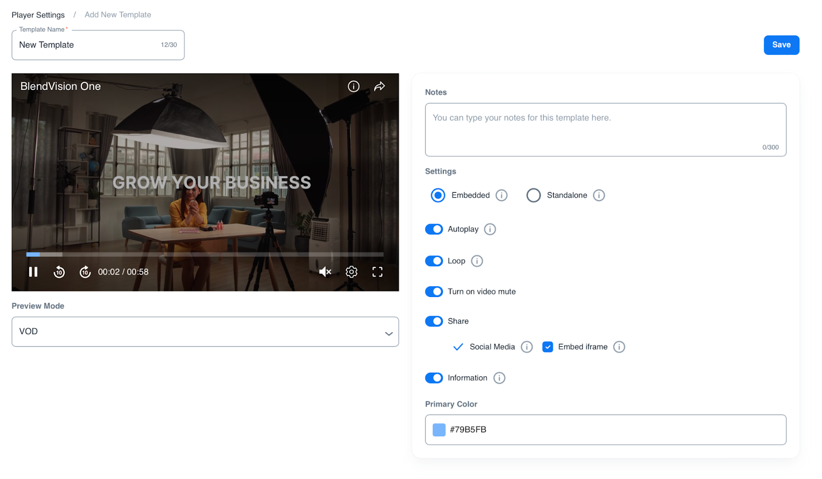 BlendVision One iframe播放器提供了一系列可自定的設置,以符合您的品牌和特定需求。以下是一個播放器的範例以及相關的範例設置: