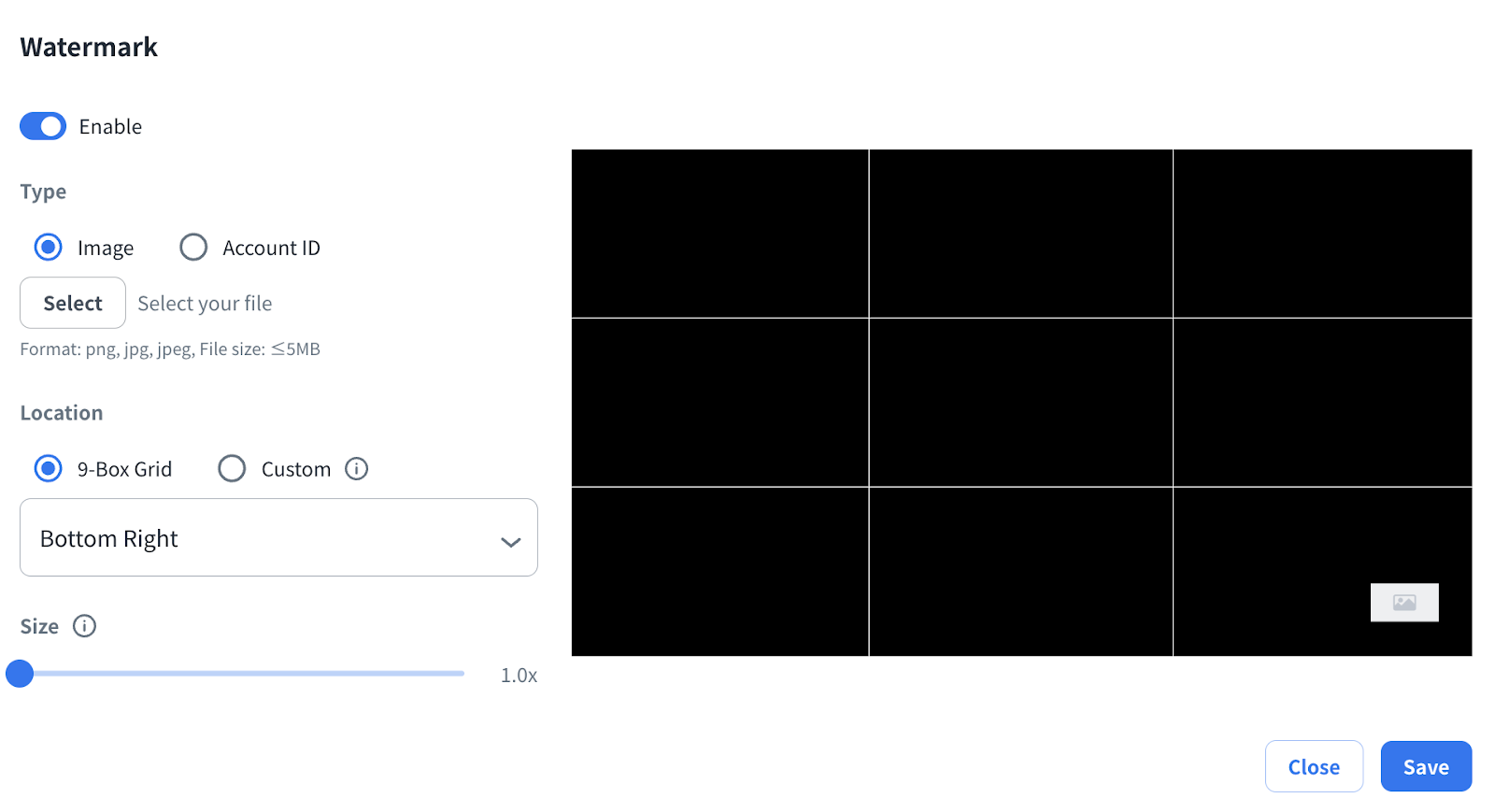 3. Select Image or Account ID as the watermark Type.
